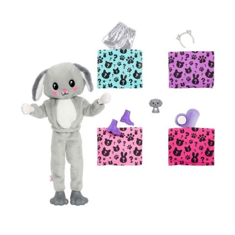 - İçindekiler: Tavşan kostümlü (5 parçalı set) Barbie® Cutie Reveal™ bebek ve evcil hayvan, tarak, etek, saç bandı ve ayakkabı içeren 4 çanta dahildir. Bebek tek başına duramaz. Renkler ve süslemeler farklılık gösterebilir.