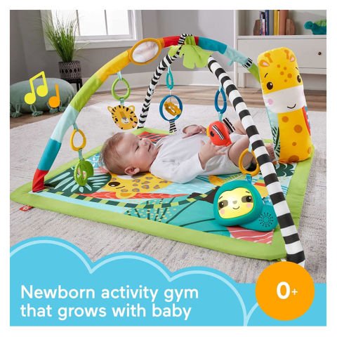 - Fisher-Price® 3'ü 1 arada Rainforest Sensory Gym™, bebeğinizle birlikte yeni doğandan yeni yürümeye başlayan çocuğa kadar büyür ve yol boyunca çılgın duyusal zevkler sunar.
