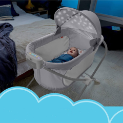 Fisher-Price Soothing View Projection Bassinet, bebeğinizin her gece tatlı bir uykuya dalmasına yardımcı olabilir. Sadece yumuşak bir itme ile bu portatif beşik, yatıştırıcı sesler ve göz kamaştırıcı bir yıldızlı gökyüzü projeksiyonu ile bebeği nazikçe sallar. Montajı kolay beşik, hafif bir çerçeveye ve gözünüzü küçük uyku makinenizden ayırmanıza izin veren havadar file kenarlara sahiptir