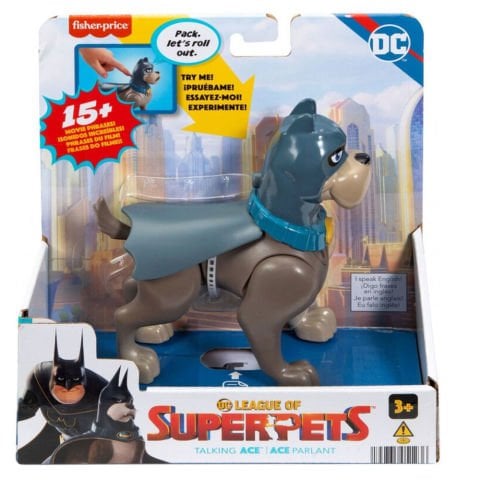 - Süper Köpek Krypto ve Tazı Ace'ten ilham alınarak geliştirilen, eklemleri bükülebilen bu köpek figürleri 10'dan fazla farklı havlama ve aksiyon sesiyle 'canlanıyor'. Tüm figürler, aksiyon dolu canlandırma oyunları için hareketli 4 bacağa ve yumuşak bir pelerine sahiptir.