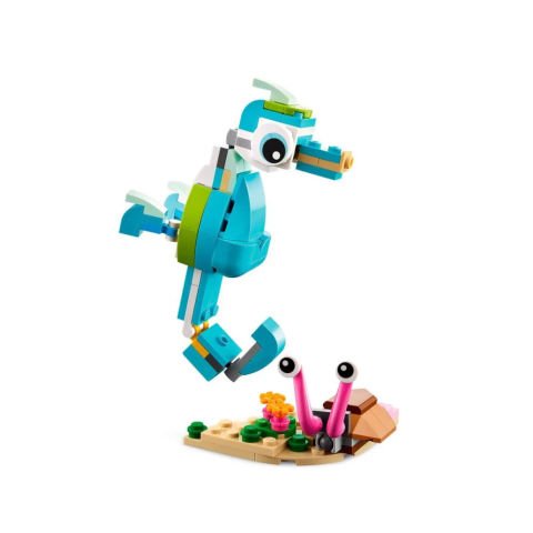 - Sınırsız oyun seçeneği – LEGO® severler, denizin dibindeki 3 sahneden birini seçebilir: Bir Yunus ve Kaplumbağaya katılabilirler; bir denizatı ve deniz salyangozuyla yüzebilirler veya bir balık ve yengeçle oynayabilirler.