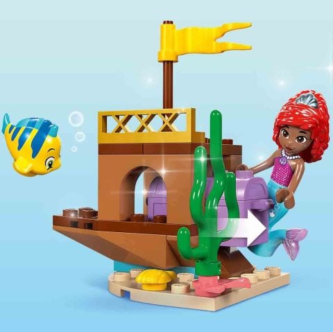•Yaratıcı oyunlara hazır! Bu inşa edilebilen sette Disney Junior dizisi Ariel’den esinlenen kristal bir mağara, Ursula ve Ariel LEGO Disney mini bebek figürleri ve Flounder LEGO Disney balık figürü bulunur.