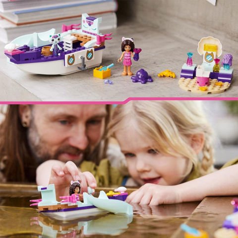 - Orijinal detaylar | Bir Gabby mini bebek figürü, Süslü Kedi figürü, inşa edilebilen bir tekne ve spa salonu, ayrıca güneş gözlüğü, can yeleği, ayna, saç ürünleri ve Gabby için ekstra peruk gibi aksesuarlar içerir.