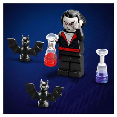 - Marvel hayranları, Miles Morales ve vampir kötü adam Morbius mini figürlerinin yanı sıra bir dizi gerçekçi aksesuar ve süper yarış arabasının olduğu bu yüksek hızlı sete bayılacak.