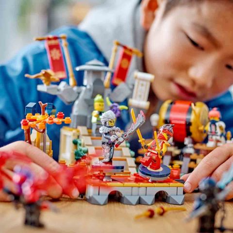 •Çocuklar için NINJAGO savaş oyun seti! 7 yaş ve üzeri erkek ve kız çocuklar, Turnuva Savaş Arenası setiyle NINJAGO Ejderhaların Yükselişi çizgi dizisinin 2. sezonundan inanılmaz aksiyon sahnelerini canlandırabilir.
