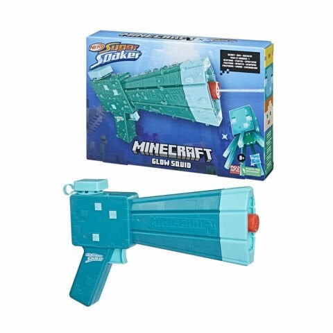 - Nerf Super Soaker Minecraft Glow Squid su püskürtücü, ilhamını Minecraft'taki suda yaşayan kalamar çetesinden alır.