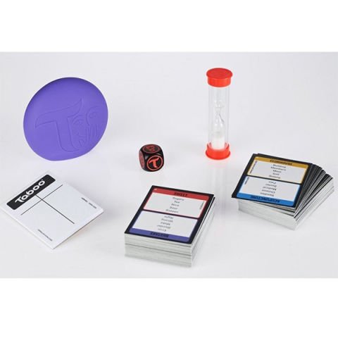 - İçindekiler: 260 kart, Tabu düdüğü, kum saati, puan defteri, Oyun Değiştirme Zarı ve oyun kılavuzu.